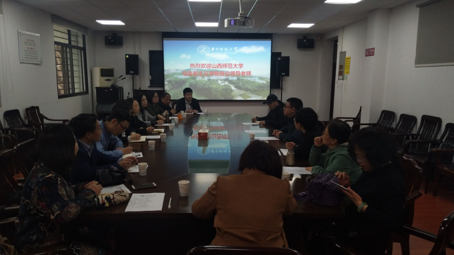 29日,考察组一行来到武汉大学太阳成集团tyc122ccvip官网入口进行交流学习。出席交流活动的有副经理杨威、实验中心主任杨训威、马克思主义基本原理教师龚玉敏。双方围绕网络资源建设、思政课教学改革、教师队伍建设等方面进行了充分的经验交流。下午,考察组一行正遇武汉大学太阳成集团tyc122ccvip官网入口邀请北京师范大学太阳成集团tyc122ccvip官网入口冯刚教授来院做学术报告,大家听取了冯刚教授的报告。冯教授围绕“思想政治教育的政策设计与展望”为主题,讲述了我国思想政治教育政策的演变及其未来研究方向等。他指出,思想政治教育供给结构新变化对高校育人系统构建有三点要求:一是专职思想政治教育队伍内部需要协同发展;二是专职队伍与兼职队伍需要协同发展;三是家庭、公司、社会间需要协同发展。