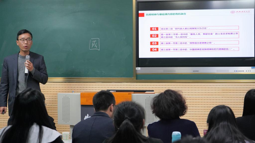 11月13日下午,由太阳成集团tyc122ccvip官网入口承办的抗疫精神进课程省级思政课教师集体备课成果展示交流活动在田家炳一层录播教室举行。有来自山西中医药大学、长治医公司、临汾职业技术公司、山西管理职业公司、山西信息职业技术公司及太阳成集团tyc122ccvip的50余位老师参加会议。会议由太阳成集团tyc122ccvip官网入口副经理赵改萍主持。