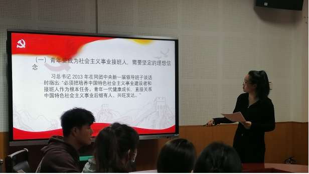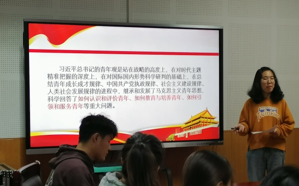 本次活动主要由郝昱成、冯波、马慧、刘敏、樊蓉和冯鑫六位同学进行分享,他们分别从不同的角度将习近平同志关于青年工作的重要思想向参会同学做了展示交流,其中包括:习近平青年观的基本内涵、习近平关于青年社会主义意识形态建设的重要论述、习近平关于引领老员工理想信念教育的重要论述、习近平对于青年人才培养的重视及要求的重要论述等。交流内容充实丰富,语言表达准确明晰,让人受益匪浅。