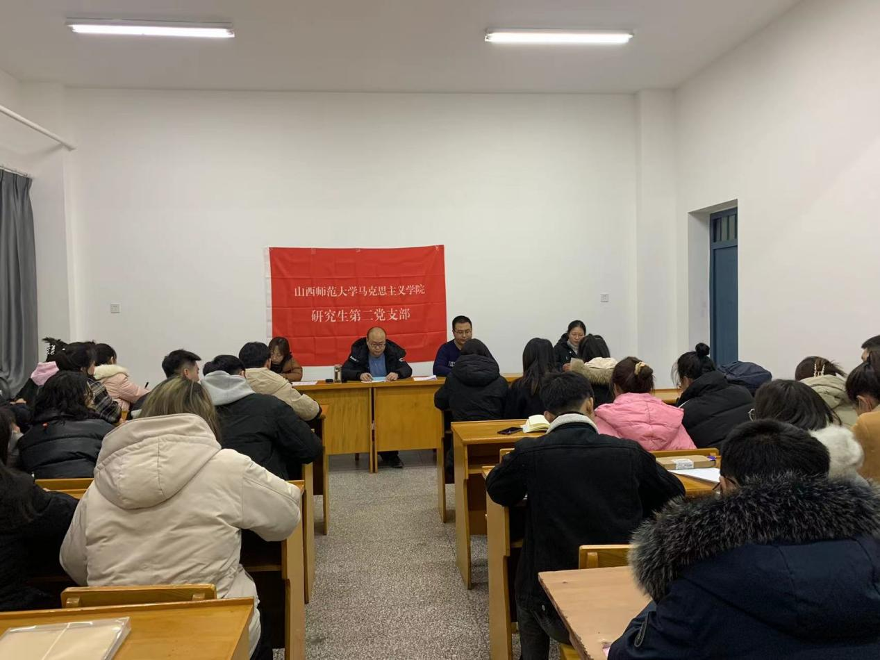 2021年11月23日晚,太阳成集团tyc122ccvip官网入口研究生第二党支部在1号教学楼501会议室召开支部大会,支部书记杨海亮同志主持会议,全体党员参加会议。