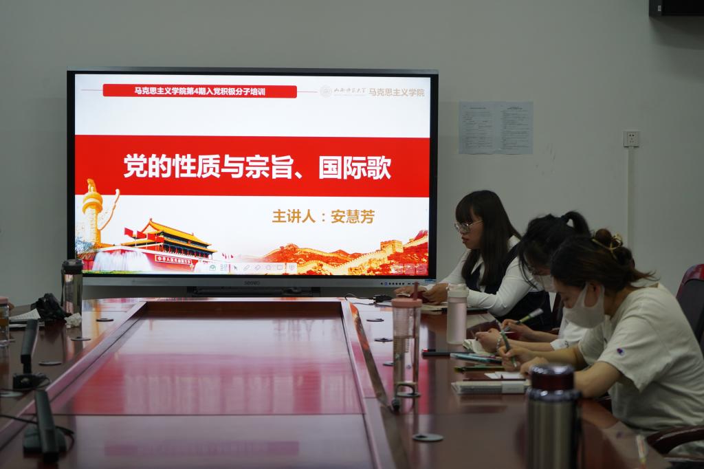 开班典礼后,公司党委常委、副董事长兼经理贾绘泽围绕中国特色社会主义制度自信的重大意义、基础和依据、问题及对策,以及如何坚定制度自信等方面展开讲述,提高了学员们的政治觉悟和理论素养;公司党委副书记孙学虎为学员们详细讲解了发展党员的工作程序,强调了发展党员的总则、入党条件、基本要求,鼓励大家要不断提升自身素质,逐步向党组织靠拢;副经理兼“守正创新”教工党支部书记赵改萍从中国共产党百年历史上的三个历史决议谈起,为学员们讲述了党的初心使命,系统全面地解读了十九届六中全会精神,带领大家从中汲取奋进力量;“守正创新”教工党支部组织委员兼纪律委员何志华以背景冬奥精神为主题,围绕举办冬奥会的历史意义、巨大成绩、历史经验、基本情况等内容,为大家上了一堂精彩的冰雪思政课;研究生第一党支部组织委员兼纪律委员崔龙燕结合相关视频与学员们一同回顾了中国抗疫纪实,感受了无数无名英雄用生命赴使命,用大爱护众生的伟大精神,重点讲授了抗疫中的青年担当,引导学员们珍惜来之不易的抗疫成果和激励大家为抗疫贡献青春力量;研究生第二党支部组织委员兼纪律委员姜延博从“不忘初心的关键是要走群众路线”的角度出发,带领学员们在百年党史中感悟无产阶级政党的人民情怀,勉励大家要修炼“功成不必在我”的境界,锤炼“功成必定有我”的担当;本科生党支部书记张玉婷为大家讲解了党的理论创新和实践创新,教育引导学员们理解党员是创新的先锋,要在日日行、常常做的过程中发现问题,在解决问题的过程中实现创新;院专职组织员安慧芳领学了《中国共产党章程》和《入党教材》,加深了学员们对党的基本理论、基本路线、基本方略等的理解,并带领大家一同学唱了《国际歌》。此外,本次培训过程中也将分组讨论贯穿于专题辅导,教育引导入党积极分子端正入党动机、增强党性观念,树立党员意识。