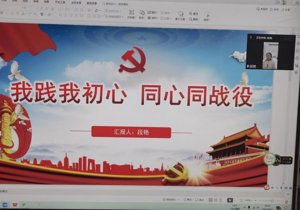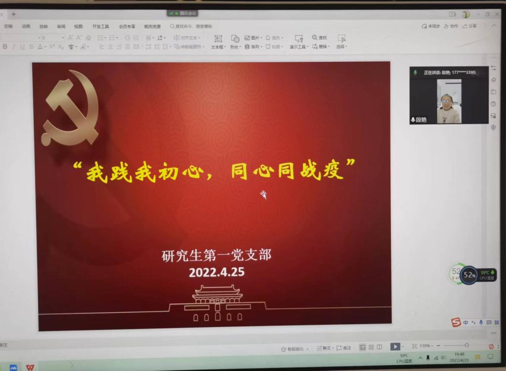 4月25日晚,太阳成集团tyc122ccvip官网入口研究生第一党支部开展“我践我初心,同心同战疫”主题党日活动,红色引擎教工党支部段艳同志应邀参加了此次活动。
