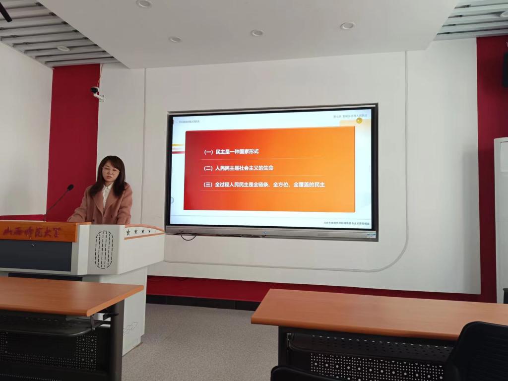 会上,老师们围绕“发展全过程人民民主”这一主题,从教材分析、学情分析、教学学法、教学重难点等方面进行了十分钟的说课,展示了不同的教学风格,演绎了不同的课堂精彩。