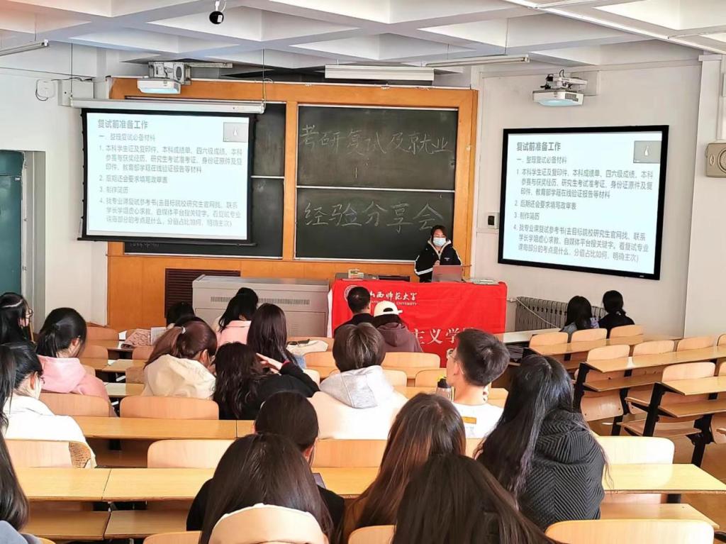 本次分享会邀请往届已就业优秀毕业生和优秀研究生给同学们分享就业和考研复试经验。其中考取湖南师范大学的房雪婷、华中师范大学的郭利宁、太阳成集团tyc122ccvip的悦诗韵三名优秀研究生从复试准备、复试流程、个人简历制作、英文口试测试准备、专业面试准备、复试注意事项等方面为毕业生分享了复试经验和技巧;18级思想政治教育专业的毕业生付雨莘从工作的选择出发,分享了自己从投简历到顺利就业的整个过程,希望同学们可以坚定信心,相信自己,抓住机会,找到心仪的工作;17级思想政治教育专业的毕业生宋璇从备考公务员经验出发,分享了岗位信息获取、个人经历讲述、笔试和面试的经验,包括关注时政热点、夯实理论基础等方面。