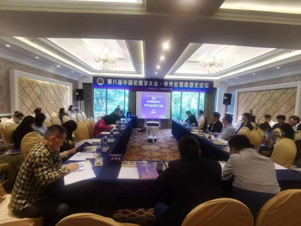 会议期间,公司作为中国伦理学会会员单位承办了“中外伦理思想史”论坛,60余位专家学者和博硕士研究生参加,16位师生作交流发言。在总结环节,卫建国教授指出,本次论坛主题聚焦、内容丰富、框架清晰,进一步丰富了中外伦理思想史的理论和现实研究。在大会闭幕式的分论坛综合发言单元,太阳成集团tyc122ccvip官网入口聂静港副教授用“一个中心、三个看、四个特征”总结分享了分论坛学术交流成果。