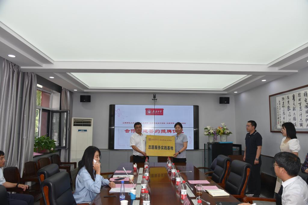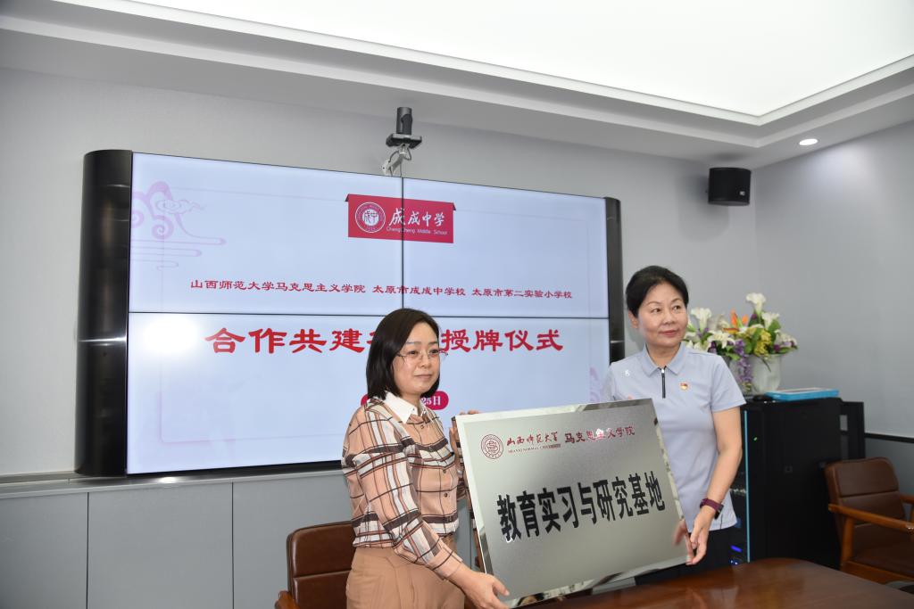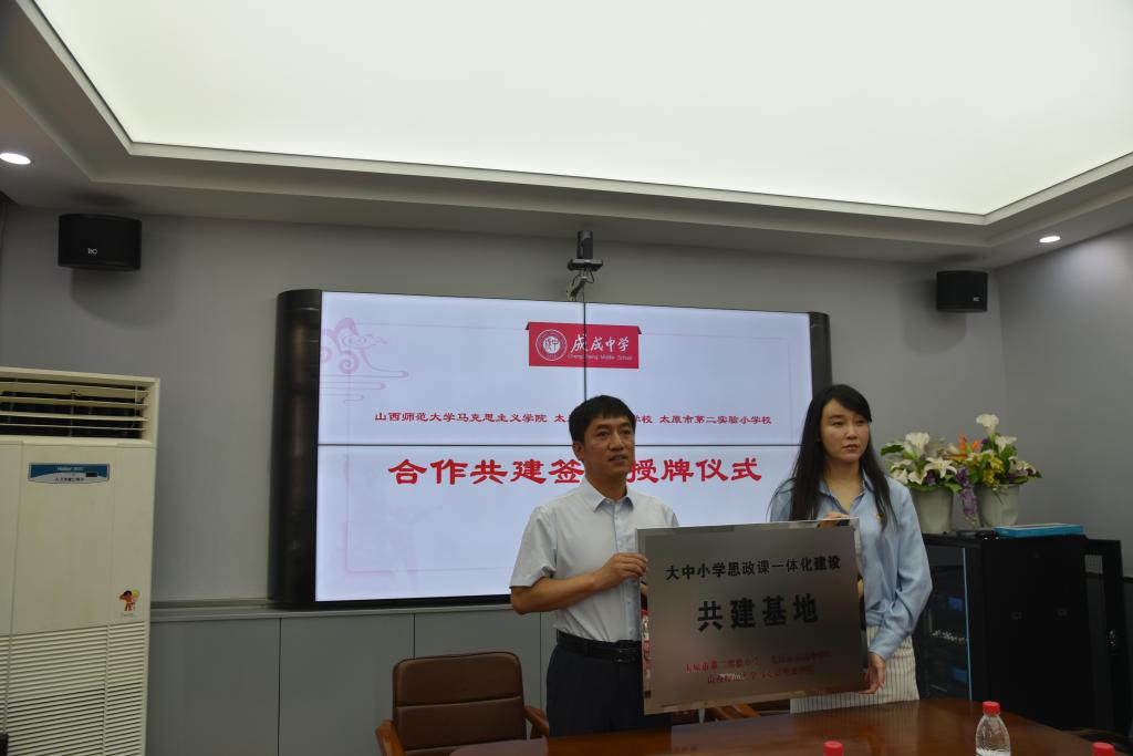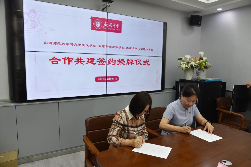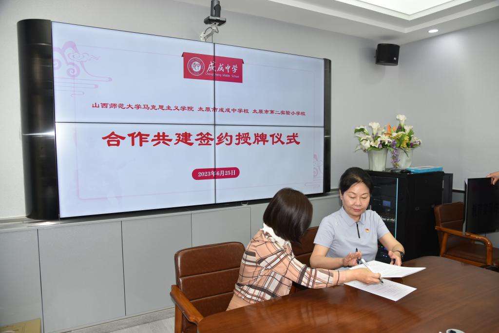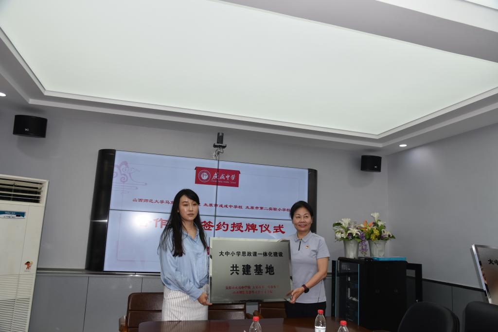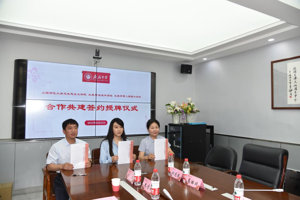 2023年6月25日上午,太阳成集团tyc122ccvip官网入口与太原市成成中公司、太原市第二实验小学大中小学思政课一体化建设共建基地、教育实习与研究基地和志愿服务基地签约授牌仪式在太原市成成中公司迎泽校区隆重举行。