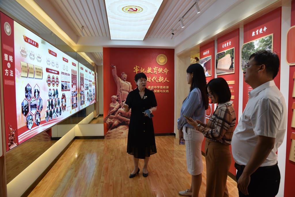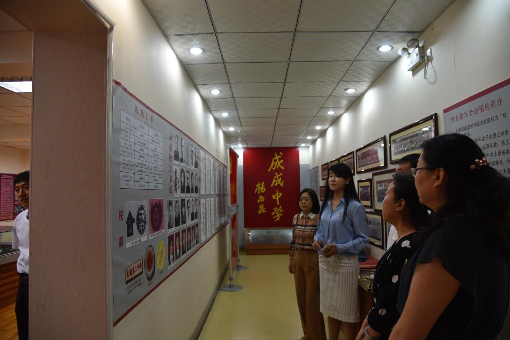 签约仪式前,公司领导老师与太原市第二实验小学董事长张晓红一行,在太原市成成中学党委办公室主任靳晓东和副董事长刘琦的讲解下,共同参观了成成中公司史馆和思政堂,感悟成成中学近百年红色校史,砥砺红色信仰,学习思政工作经验。