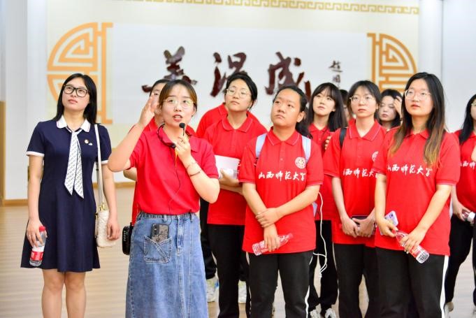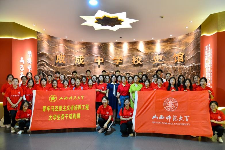 成成中学由晋籍北平师范大学毕业的进步员工取《中庸·自成》中“明德明理,成己成人”之意为办学宗旨而创建,“七七”事变后,成成师生举校从戎,共赴国难。走进校史馆,一幅幅照片、文物档案以历史为序,展现出成成中学往昔的峥嵘岁月。成成中学教师围绕真实发生的“师生抗日游击队”展开教学,带领青马学员感受那段波澜壮阔的历史,帮助学员了解成成中学的历史、成成师生筚路蓝缕奠基立业的艰辛历程,激励学员克服一切艰难险阻,踔厉奋发,为实现中华民族伟大复兴而奋斗。成成中学的思政课由思想政治课拓展到各个科目,全面推进思政课实践,各个优秀教师的事例坚定青马学员的理想信念。为全体青马学员讲了一堂生动的思政实践课