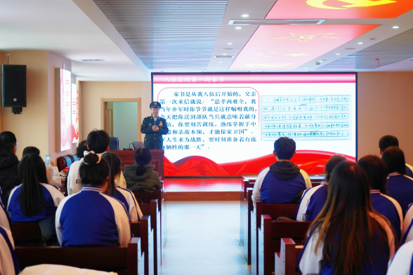 参观结束后,军队老干部牛金柱以红色家书为主题进行了党课讲授。“烽火连三月,家书抵万金。”从入伍到退休前,他一共收到来自父亲的五十封家书。这些家书不仅承载着父亲对儿子的殷切嘱托,而且展现出一名共产党员的初心与使命。同学们在重温红色记忆、品味红色家书后纷纷表示,要传承红色基因,赓续红色血脉,发扬光荣传统,谱写时代华章。
