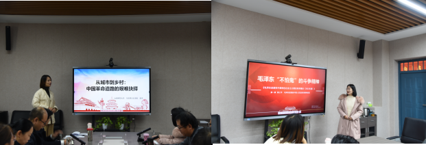 集体备课会上,陕西师范大学王婷老师和公司高宇老师先后进行示范课教学。王婷老师以“毛泽东‘不怕鬼’的斗争精神”为题,从毛泽东“不怕鬼”斗争精神的形成背景、意蕴内涵和实践价值三个方面进行教学展示。高宇老师以“‘城市中心论’的屡屡碰壁”作为切入点,深入挖掘经典文献中的理论意涵,坚持史论结合,引导同学们深刻理解中国革命新道路的艰难探索及其确立过程。