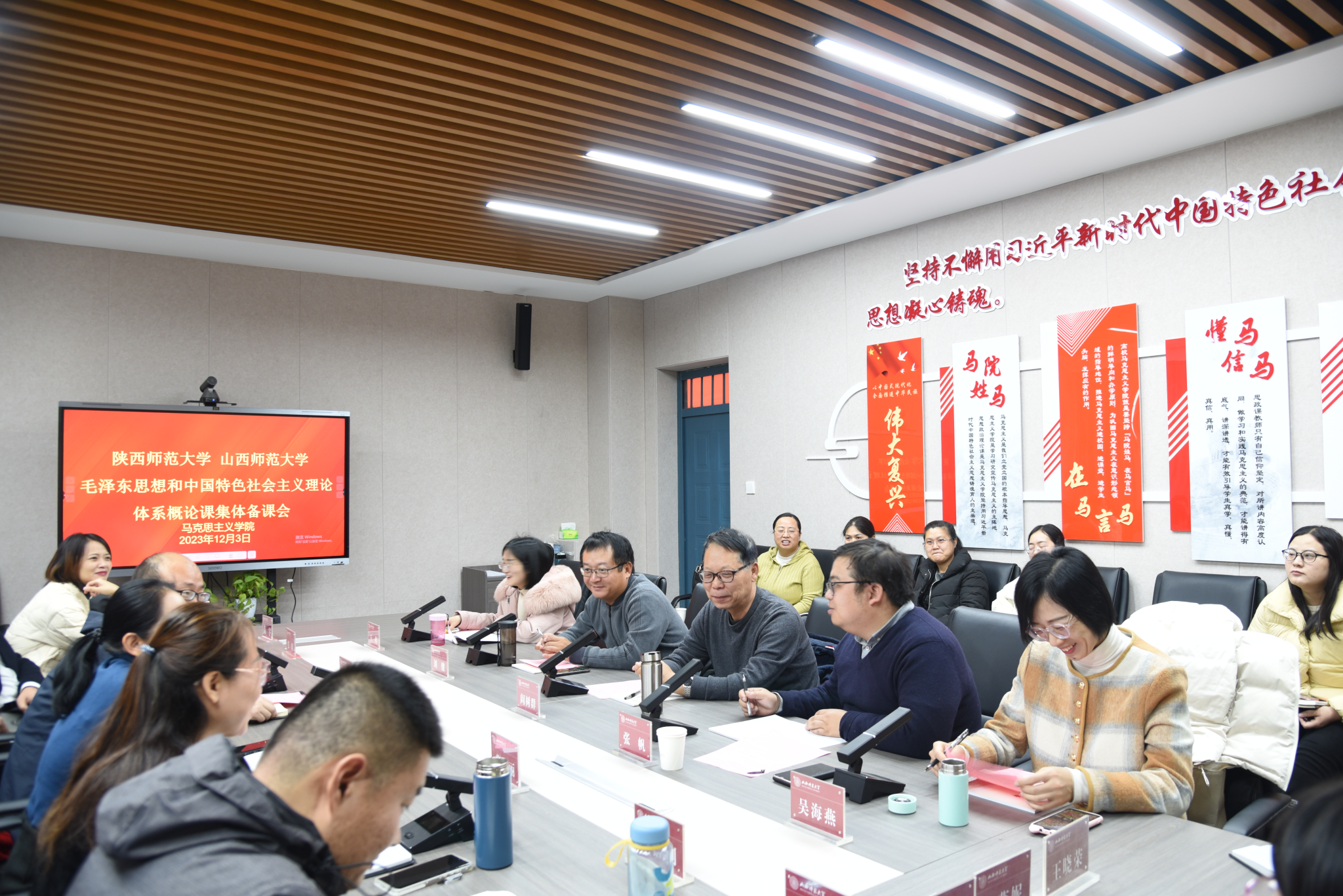 为促进两地高校公司产品交流合作,共享优质教育资源,进一步提高思政课教学效果,营造浓郁的教学研究氛围,12月3日上午,公司“毛泽东思想和中国特色社会主义理论体系概论教研室”邀请陕西师范大学太阳成集团tyc122ccvip官网入口阎树群教授等5名教师共同举行了一堂跨校集体备课会。备课会由公司副经理(挂职)杨海亮主持。