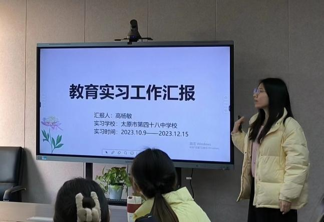 本学期公司6名卓越生分别赴太原市第四十八中公司、太原市进山中学、临汾市第一实验中学,进行了为期十周的教育实习。高杨敏同学从基本情况、教学工作、班主任工作和实习感想四方面汇报了在四十八中的实习经历。贾倩同学和董亚菲同学分别以生活篇、工作篇、员工篇和告别篇,从公司概述、实习情况和实习感悟等方面介绍了在进山中学实习的状况。白晓青同学、郭佳运同学和李雨萌同学则从遇师、育人、寓教和愈己等方面分享了在临汾一中实习时承担的教学、管理工作与实习收获。