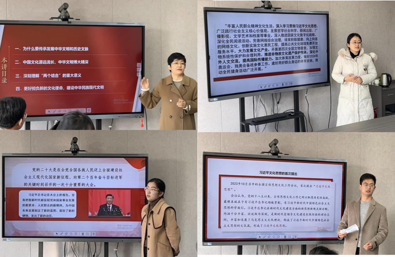 随后,来自不同公司的18位青年教师分别选取习近平文化思想、新质生产力、人与自然和谐共生、当前就业形势、乡村振兴等时政热点进行了《形势与政策》课教学基本功展示。王晓荣等评委老师进行了针对性和专业性点评,遴选活动既是一次展现新时代思政课教师风采的平台,也是兼职思政课教师们相互学习、交流的良好机会,不同专业背景的青年教师们交流讨论热烈,教学基本功展示取得了预期的积极效果。