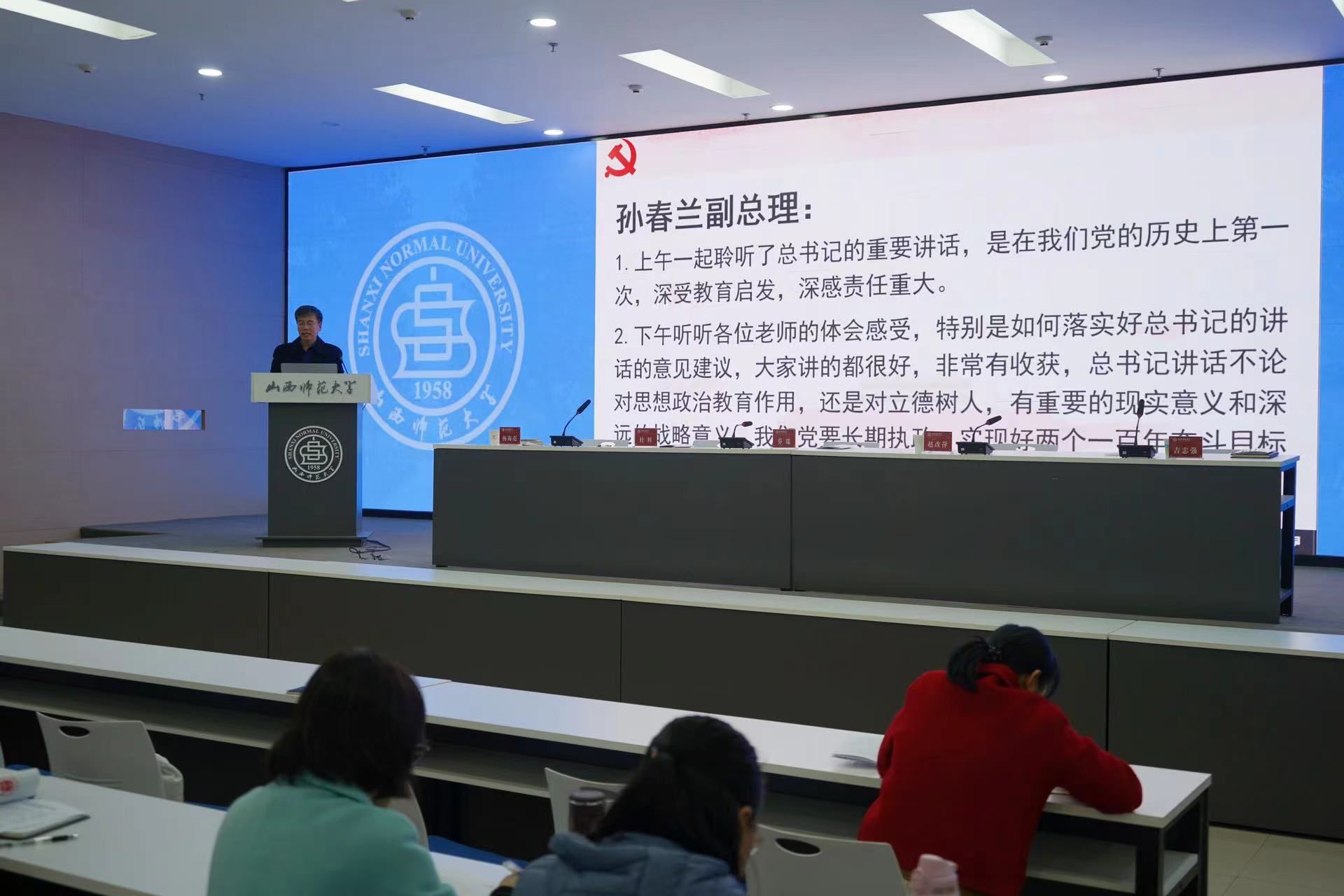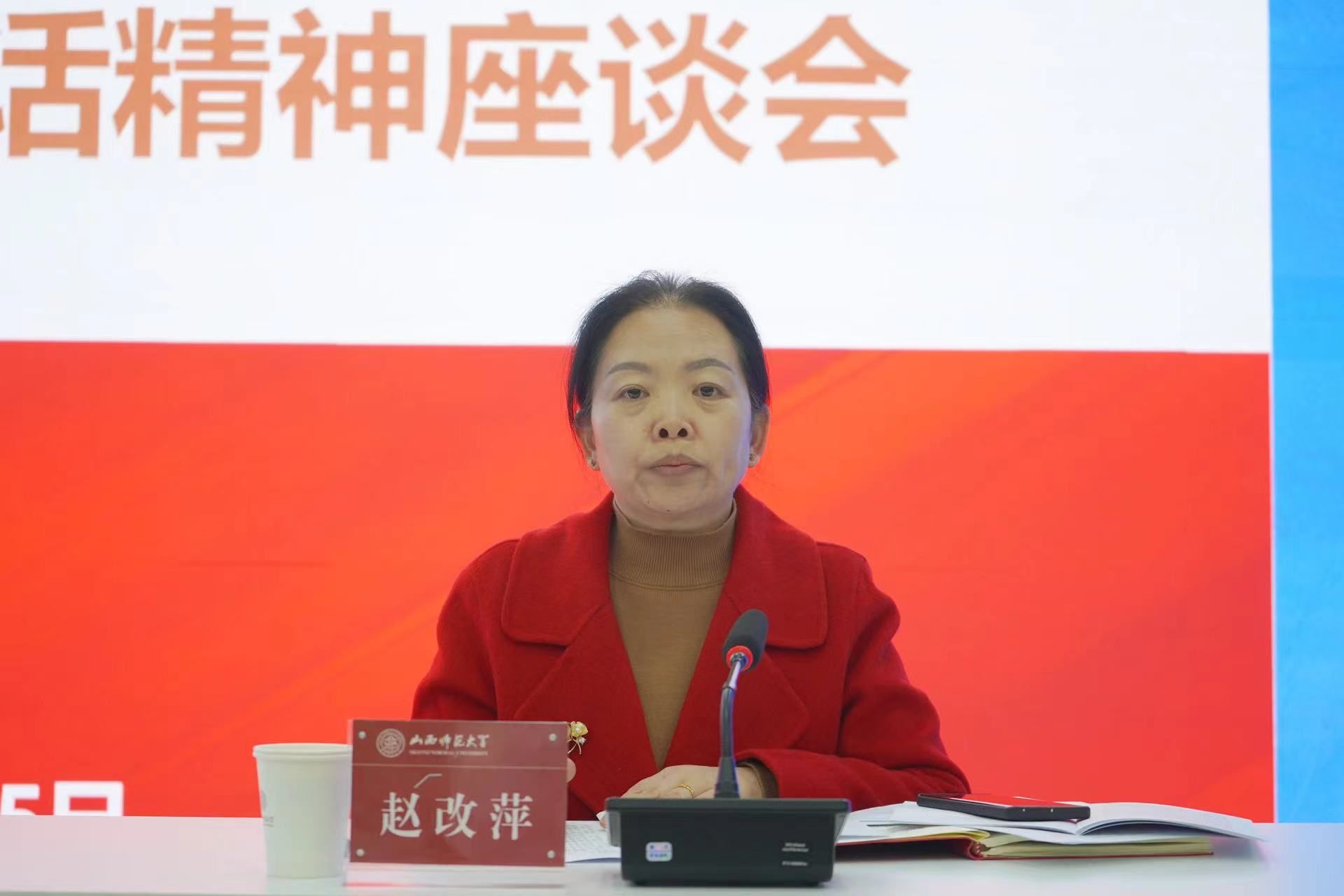 全国优秀教师、公司思想政治理论课教师座谈会参会代表赵跃先教授围绕办好思政课地位作用、思政课教师能力素质、上好员工真心喜爱进行了专题领学。教师代表杨源、周慧红分别结合课堂教学、当好思政课教师进行了交流发言。