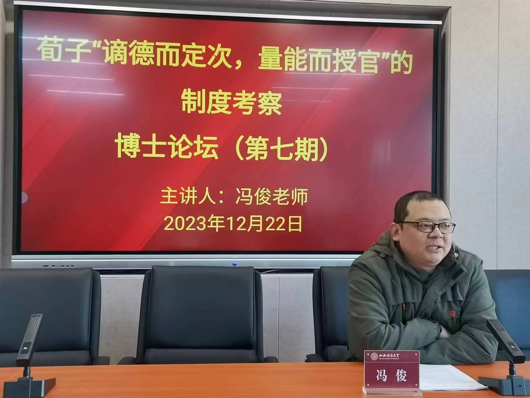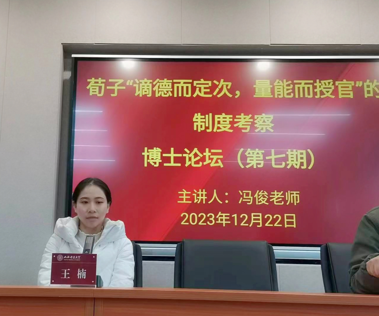 首先,由王楠老师对冯俊老师及本次论坛的主要内容作了简要介绍,指出本次论坛对于我们从制度史的角度深入理解荀子尚贤使能思想具有十分重要的理论意义。