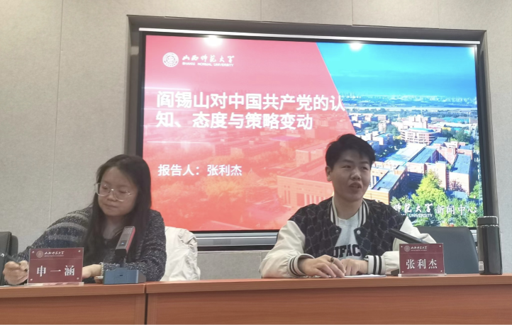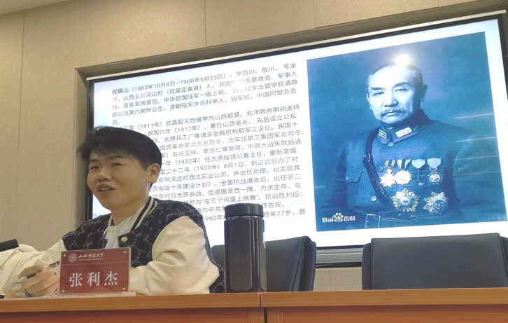 其次,张利杰老师作了题为《阎锡山对中国共产党的认知、态度与策略变动》的报告。他以阎锡山生平为背景,从阎锡山治山西分阶段、阎锡山研究相关著作、阎锡山与中国共产党的关系出发,指出过去对阎共关系演变的认识不足,尤其对阎锡山的思想、行为理解不到位。阎锡山尽管在政治舞台中显得精于权变,但实际上其制定内政外交策略有不变的思维逻辑,且有一套思想理论体系作支撑。如果简单地将阎锡山视为政治投机者,将无法理解阎锡山的矛盾之处以及阎共关系变化的深层原因,势必影响对民国山西政治的认识。