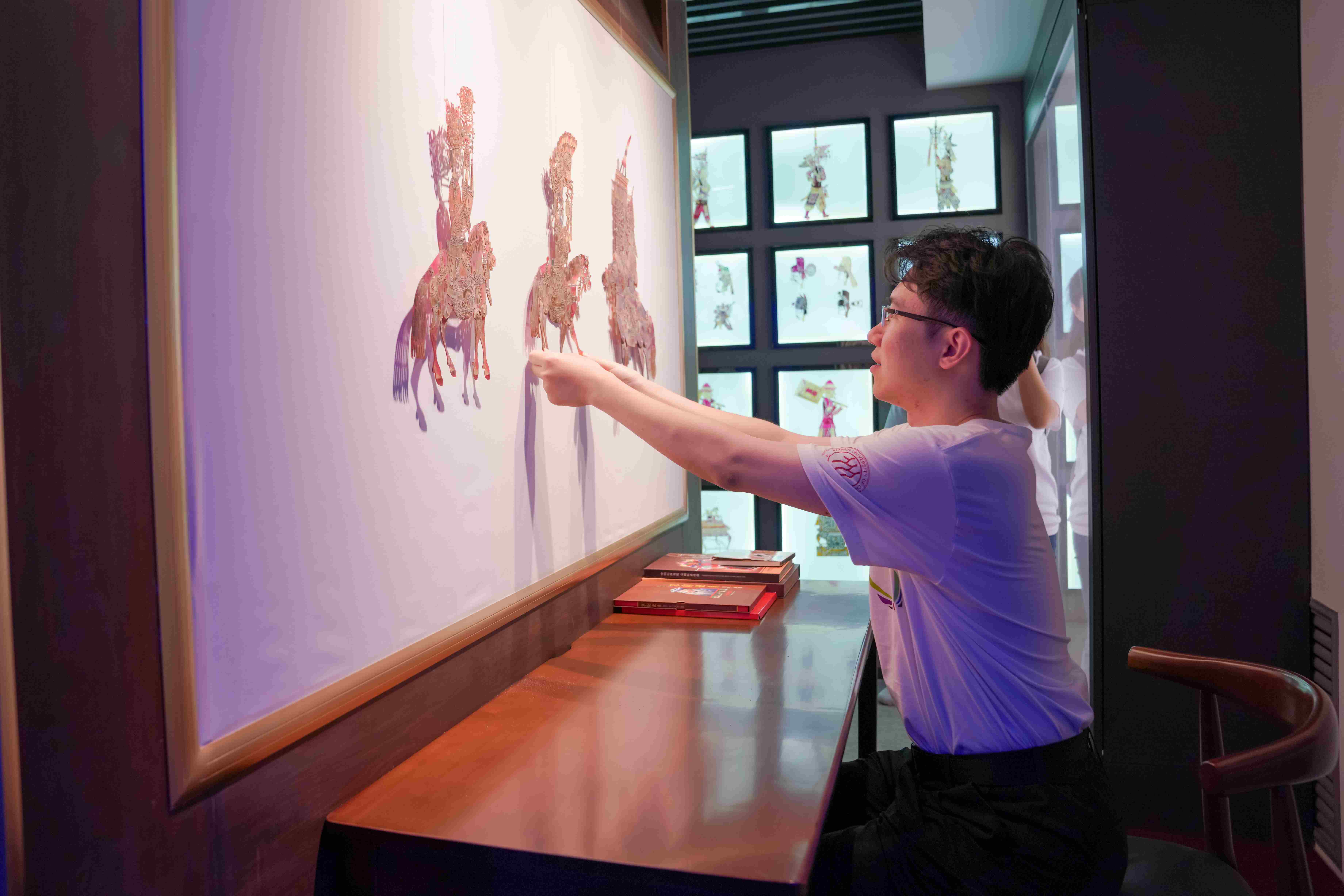 来自中国人民大学的博士生体验皮影戏。禹成炎 摄