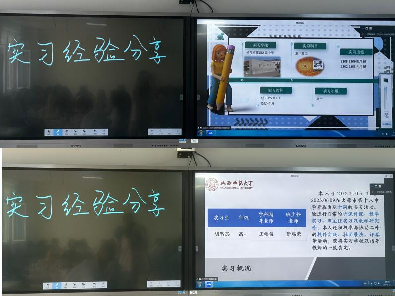7月2日上午,太原市实验中公司李丽老师以《如何做好教学设计》和《中学政治教材分析》为题,进行了两堂引人入胜的专题授课,为同学们分享了宝贵的教学经验。下午,太原市育英中公司赵园园老师以《班级管理与沟通技巧——班主任的“修炼宝典”》为题,通过讲述自己的从教经历,从“三无”、“三有”和“无为”三境界为大家传授自己的“修炼宝典”。随后,太原市第十八中公司文综组组长王福俊老师以《实习期间的教科研探索》为题,讲授了何为教科研、教科研的现状以及如何在实习期间进行教科研等问题,鼓励同学们在实习过程中不断从“思”、“学”、“研”、“训”和“赛”五个方面开展教科研活动,主动反思,不断改进。