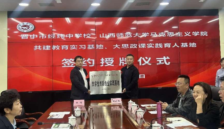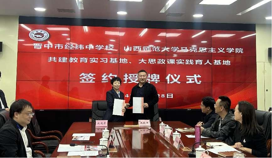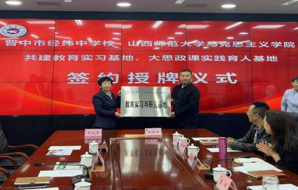 10月28日下午,公司与晋中市经纬中公司共建教育实习与研究基地、大中小学思政课一体化建设基地、老员工创新创业实践基地签约授牌仪式在经纬中公司举行。仪式由经纬中公司副董事长王宏主持,公司常务副经理(正处级)赵改萍、党委副书记杜辉、副经理张昭、副经理杨海亮、思政系主任贾蕾以及经纬中公司领导班子参加。