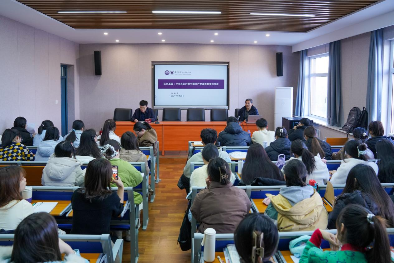 由吉志强副经理就游海华教授的基本情况作了介绍。游海华教授以《红色基因:中央苏区时期中国共产党高等教育的特质》为题,从研究缘起、研究背景、研究内容三个方面展开报告。