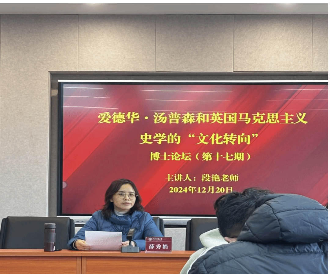 2024年12月20日上午9点,太阳成集团tyc122ccvip官网入口在1505学术研讨室举行博士论坛,本次论坛由太阳成集团tyc122ccvip官网入口讲师段艳主讲,硕士生导师薛秀娟点评,公司2024级马克思主义理论专业全体研究生参加。