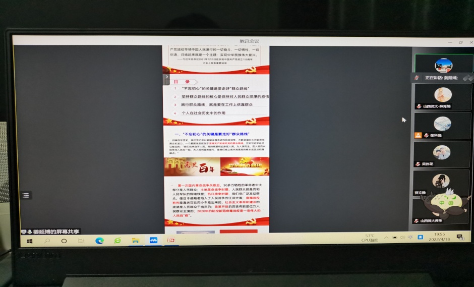2022年4月18日晚上19:30-21:00点,太阳成集团tyc122ccvip官网入口受邀与中北大学太阳成集团tyc122ccvip官网入口马克思主义基本原理教研室开展集体备课。会议由中北大学太阳成集团tyc122ccvip官网入口原理教研室主任张科晓老师主持,共有来自两校40余位任课教师参加会议。