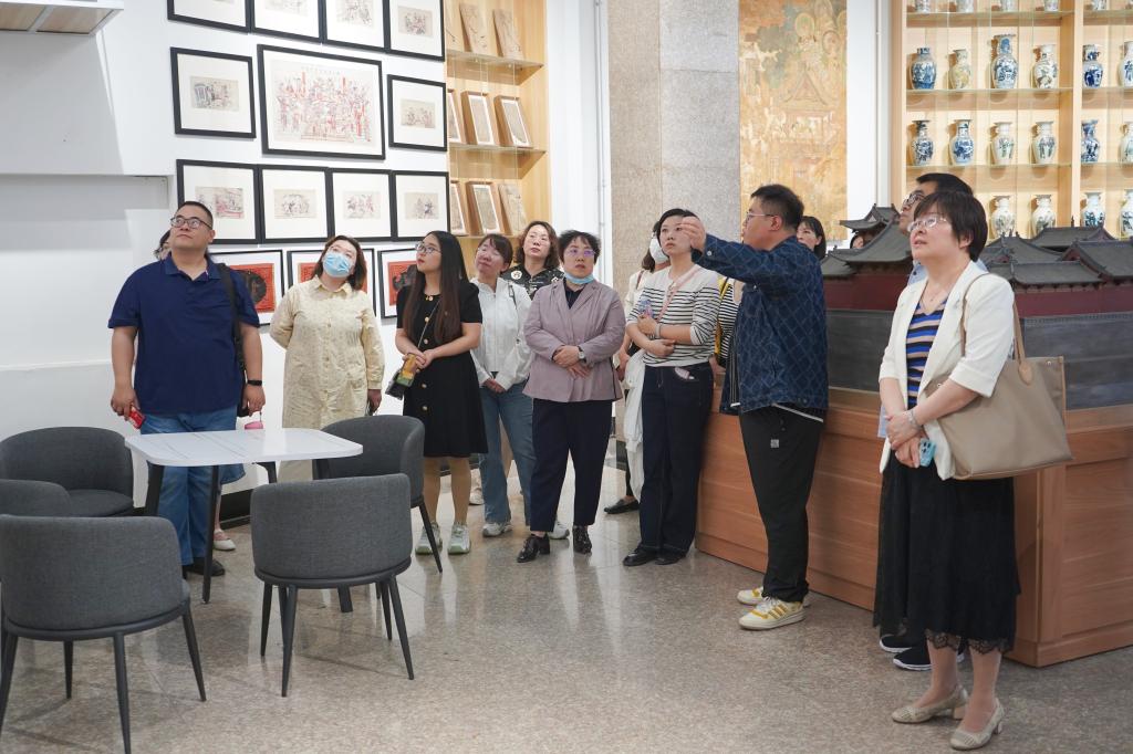 活动第一项,刘琦名师工作室一行22人参观了公司戏曲博物馆,走过“百米”思政文化街,感受了校园浓厚的文化气息和积极向上的思政氛围。参观活动由公司副经理赵秀芳、思政系主任杨海亮、副教授张慧玲陪同。
