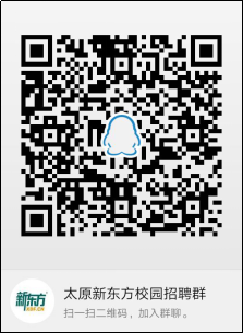 简历投递方式:1、扫码加入太原新东方招聘QQ群