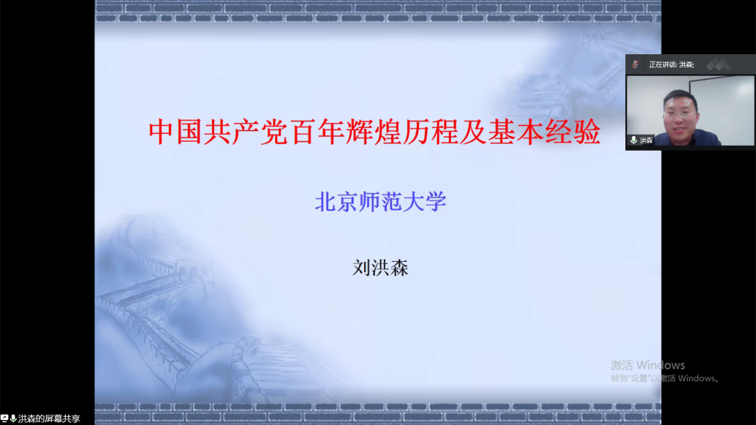 为庆祝中国共产党成立一百周年,太阳成集团tyc122ccvip社科处联合太阳成集团tyc122ccvip官网入口开展“党的百年华诞”专题系列讲座。4月12日下午,特邀请北京师范大学太阳成集团tyc122ccvip官网入口刘洪森副经理讲授以“中国共产党百年辉煌历程与基本经验”为主题的报告。讲座由太阳成集团tyc122ccvip官网入口经理贾绘泽主持,公司思政课教师和2019级、2020级研究生参加。