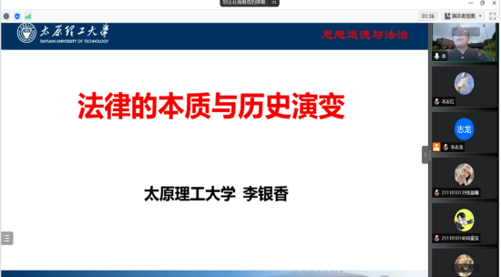 5月11日下午,太原理工大学、教育部思政课教学展示二等奖获得者李银香副教授走进《思想道德与法治》课堂,为公司100多名大一员工讲授《法律的本质与法律的历史演变》。李银香副教授运用问题链教学法,从做人的底线是什么?——法律的本质——法律的特征——法律的历史——你要做一个守法的人还是要做一个好人?等环环相扣的问题出发,联系实际,选取具体案例,使员工在潜移默化中接受理论的熏陶。