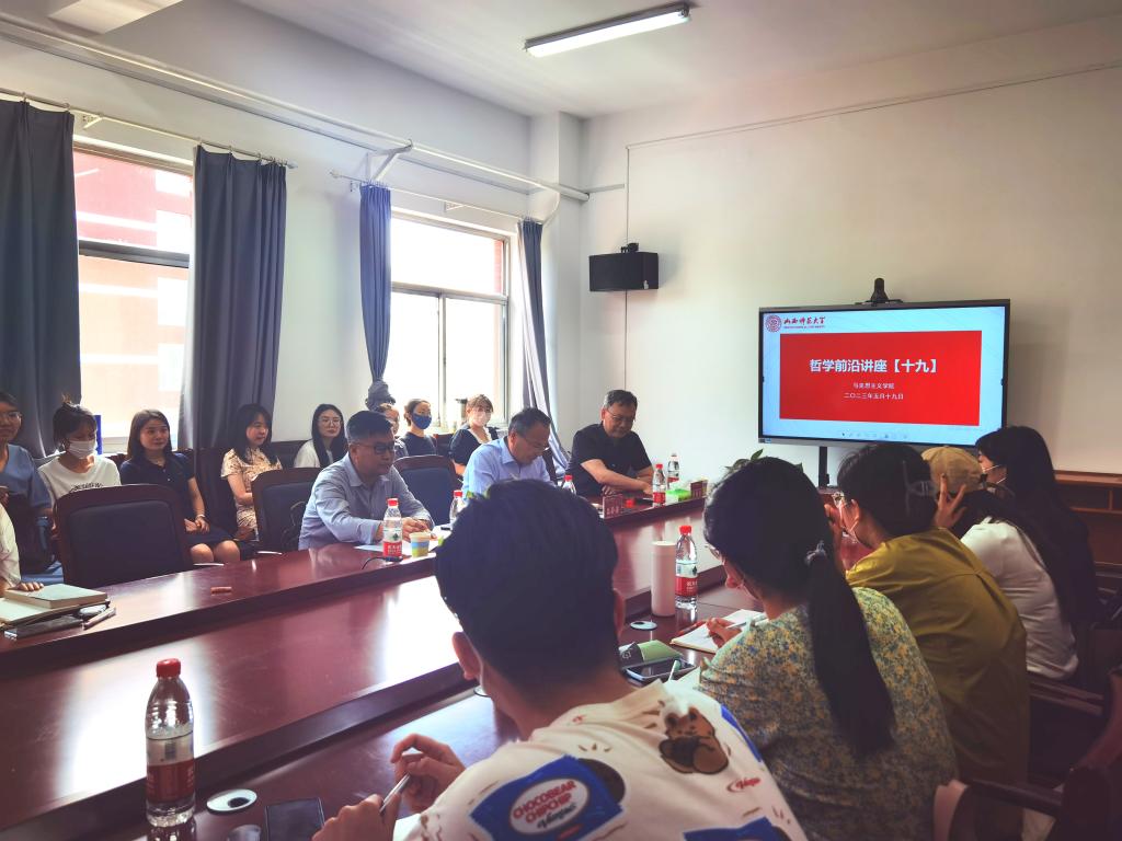 5月19日下午,中国人民大学文公司曾艳兵教授应邀来公司作第十九次“哲学前沿讲座”,主题为“哲学化的文学与文学化的哲学——以存在主义文学为例”。讲座由公司副教授聂静港主持,文公司副教授高超与谈。