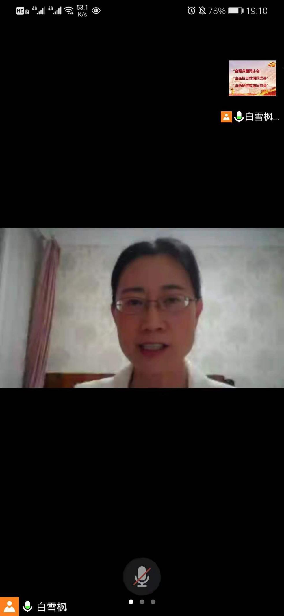 白雪枫老师首先指出,根据第四阶段的党史学习教育,本次主要和支部党员共同沟通学习山西抗战的光荣历史。白雪枫老师指出,2021年既是中国共产党成立100周年,也是山西党组织成立近100周年。从抗战全局的地位、全国统一战线的最早成功实践、主要战场、八路军的故乡、革命根据地的发源地等五个方面对山西抗战历史贡献做出了较为全面的分析。其次,白雪枫老师重点讲述了把山西摆到了推动中国革命和推动抗日战争的战略基地重要地位。根据毛泽东同志提出“经营山西”、“东征山西”的战略构想,山西是华北敌后抗战的中心,是八路军开辟华北敌后战场的立足地和出发地,成为最早成功实践党的抗日民族统一战线,为夺取抗战胜利作出了巨大牺牲和突出贡献。最后,白雪枫老师指出山西的抗战培育了伟大的太行精神和吕梁精神,成为中华民族伟大抗战精神的象征,对历史前进起着巨大的推动作用。