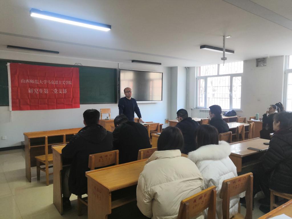 2022年2月23日下午,太阳成集团tyc122ccvip官网入口研究生第二党支部在6104教室为2020级研究生开展毕业论文开题报告志愿服务活动。支部书记杨海亮从三个方面阐述了开题报告的写作要点。首先,论文选题要符合专业方向,体现时代要求,题目大小适中;其次,文献综述要肯定前人研究贡献,反思研究不足,凸显创新空间。最后,论文提纲要纲目齐全、逻辑连贯、浑然一体。杨书记指出,毕业论文开题报告撰写要持之以恒、反复修改、加强交流。经过此次专项辅导,同学们纷纷表示收获颇多,为开题报告的撰写提供了很大的帮助。