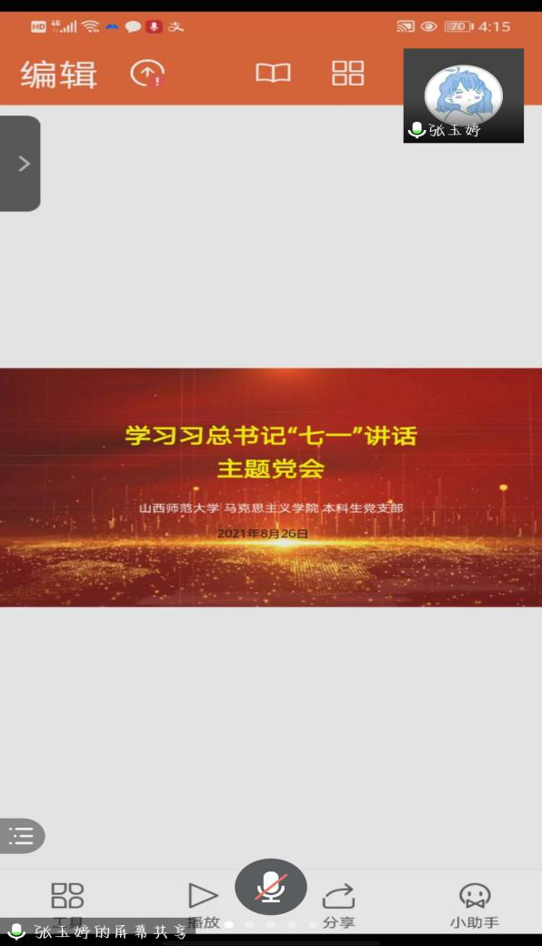 为强化党员同志理论武装,推动党史学习教育走深走实,8月26日,公司本科生党支部通过腾讯会议组织召开支部线上会议,深入学习习近平总书记“七一”重要讲话精神,会议由支部书记张玉婷主持,支部全体成员参加。