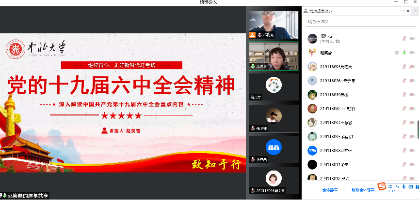 2022年5月28日下午,公司研究生第二党支部在腾讯会议举行线上党课活动,邀请中北大学太阳成集团tyc122ccvip官网入口经理赵笑蕾教授主讲党的十九届六中全会精神专题党课。支部书记杨海亮同志主持,支部全体党员和积极分子参加会议。