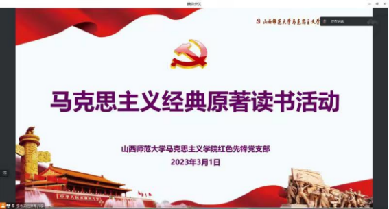 2023年3月1日晚,“红色先锋”党支部正式启动“马克思主义经典原著”读书活动,支部全体党员参加。