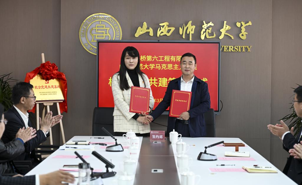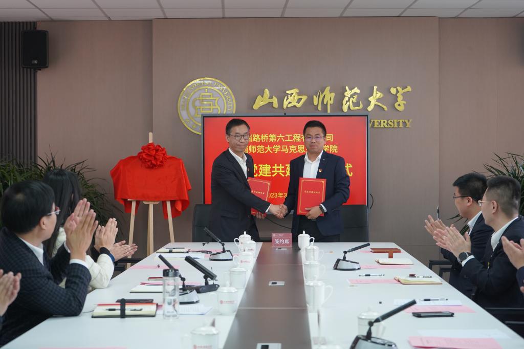 乔瑞和赵国锋分别代表双方党委签订了党建共建合作协议;“守正创新”党支部、“红色先锋”党支部分别与山西路桥第六工程有限公司机关一党支部、太原联络线ZBLJ1项目党支部签订了结对共建合作协议。