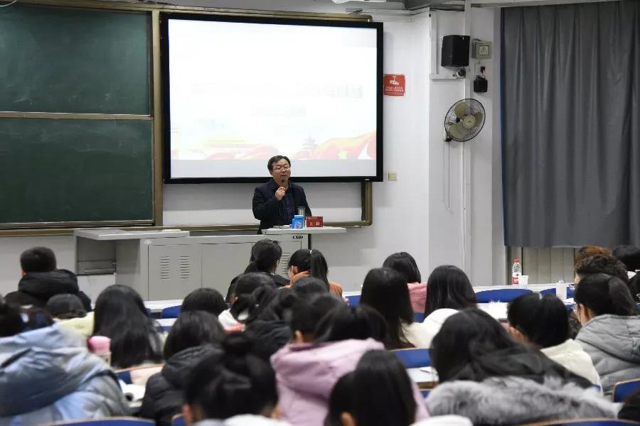 首先,由赵秀芳老师对党的十九届四中全会精神进行解读。她以国家制度与国家治理体系和治理能力的关系、党的十九届四中全会精神的主要内容、学习和贯彻党的十九届四中全会精神的四个维度为主要切入点,为学员们生动地解读了党的十九届四中全会精神。讲述过程中,赵秀芳老师结合实际对相关内容展开阐释,加深了学员们对于时政热点的认识与领悟。最后,她向全体学员提出建议,希望大家认真阅读全会决议,将党的十九届四中全会精神内化于心,外化于行。