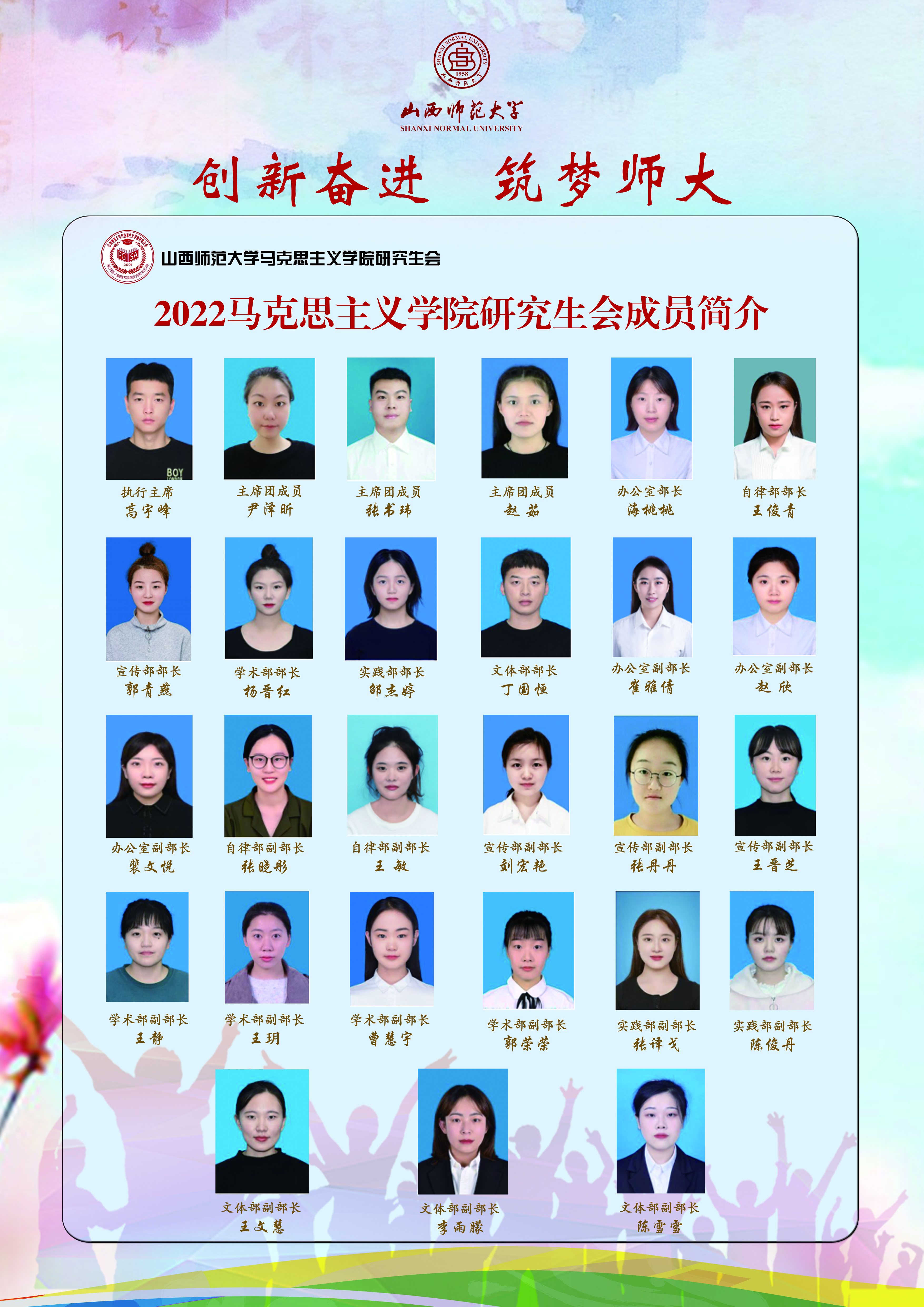 4.学术部:日常负责收集提供各类学术信息;根据研究生实际需求组织讲座、学术沙龙、报告会、学术论坛等;协助理论宣讲团组织院内宣讲。