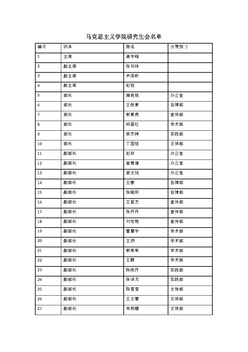 2.自律部:日常负责研究生会的纪律管理及工作考核,维持各项活动的秩序,维护校风校纪和校园规范。