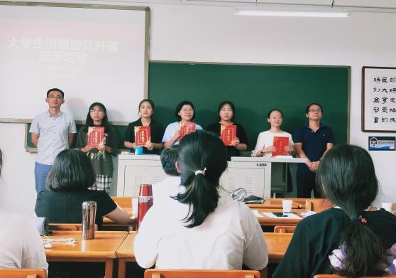 在比赛开始前,各参赛队伍精心设计参赛课题,准备教学课件。比赛过程中,每一参赛队伍的主讲成员在主持人的组织下,依次有序上台进行思政课教学展示。多数参赛员工结合思想政治理论知识,将过去几个月抗疫事例作为生动教材,结合时政热点与个人志愿服务经历,以大方自然的姿态,动人且富感染力的语言,讲述了一节又一节生动有趣的思政课。比赛结束后,樊婧老师和胡志远老师对参赛团队的讲课情况进行了整体点评,肯定了同学们积极认真的比赛态度,针对部分同学讲课过程中存在的不足提出了一些建议。本次思政课比赛共选出一等奖4名,二等奖7名,三等奖10名,优秀奖10名。由太阳成集团tyc122ccvip官网入口副经理赵改萍老师及各位评委老师为获奖团队颁发荣誉证书。