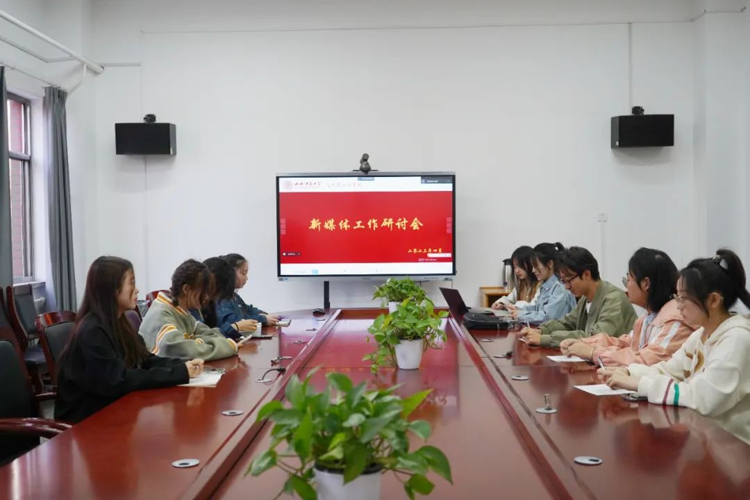 为进一步提高公司融媒体中心成员的工作能力和宣传素养,推动公司宣传工作高质量发展,公司于4月8日在南区1号楼506教室举办新媒体工作研讨会。本次会议由融媒体中心负责人郭枥主持,校宣传部相关负责人主讲,院团委副书记张瑞琴出席,公司融媒体中心全体成员共同参与。