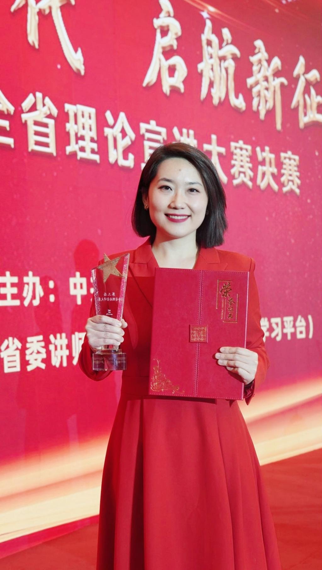 在本次“礼赞新时代 启航新征程”理论宣讲大赛中,高宇航老师宣讲的主题是《用奋斗点亮青春》,她紧紧围绕党的二十大精神,结合自身工作实际,生动讲述了作为一名青年思政课教师在教学科研工作中的成长变化,以小切口呈现大主题,以小故事反映大变化,用通俗易懂的语言阐释党的创新理论,传递了建功新时代的青春力量,彰显了当代青年的时代风采。