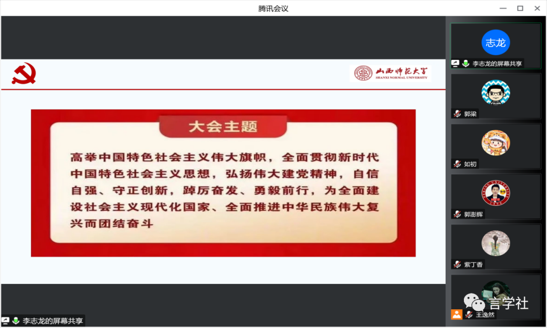 为推动党的二十大精神进教材、进课堂、进头脑,10月24日下午,太阳成集团tyc122ccvip2022级博士研究生在郭正红教授所授课程——《中国马克思主义与当代》的课堂上,通过腾讯会议开展党的二十大精神学习研讨。
