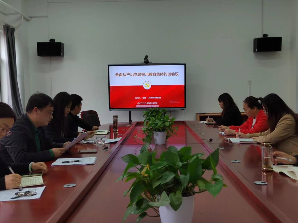 5月6日下午,公司于南区1号楼506会议室召开全面从严治党暨警示教育集体约谈会议。会议由公司党委副书记杜辉主持。全体党政领导班子成员、党支部书记、团委副书记、教研室主任、专职组织员及辅导员代表参加会议。